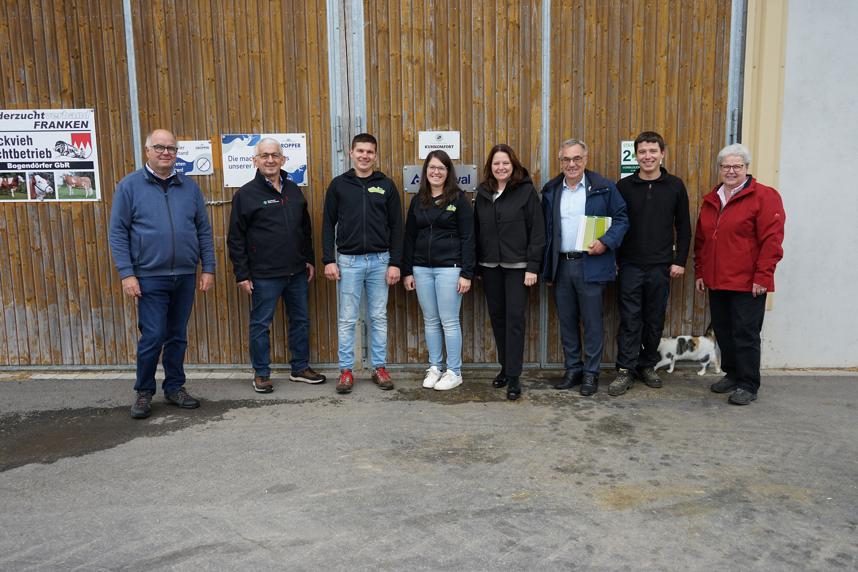 Erste Station war der Milchviehbetrieb Bogendörfer GbR in Roßtal-Großweismannsdorf. Der Betrieb zeichnet sich durch eine moderne Milchviehhaltung und ein besonders engagiertes Ausbildungskonzept aus. Die Familie Bogendörfer legt großen Wert auf eine praxisnahe und umfassende Ausbildung junger Landwirtinnen und Landwirte. Die Auszubildenden übernehmen früh Verantwortung, werden aktiv in alle Betriebsabläufe eingebunden und profitieren von einem starken Teamgeist sowie einem familiären Miteinander. Für ihr Engagement wurde der Betrieb mit dem Staatspreis für vorbildliche Ausbildung ausgezeichnet. Aktuell ist der Betrieb mit der Planung eines Nahwärmenetzes für 90 Haushalte befasst.