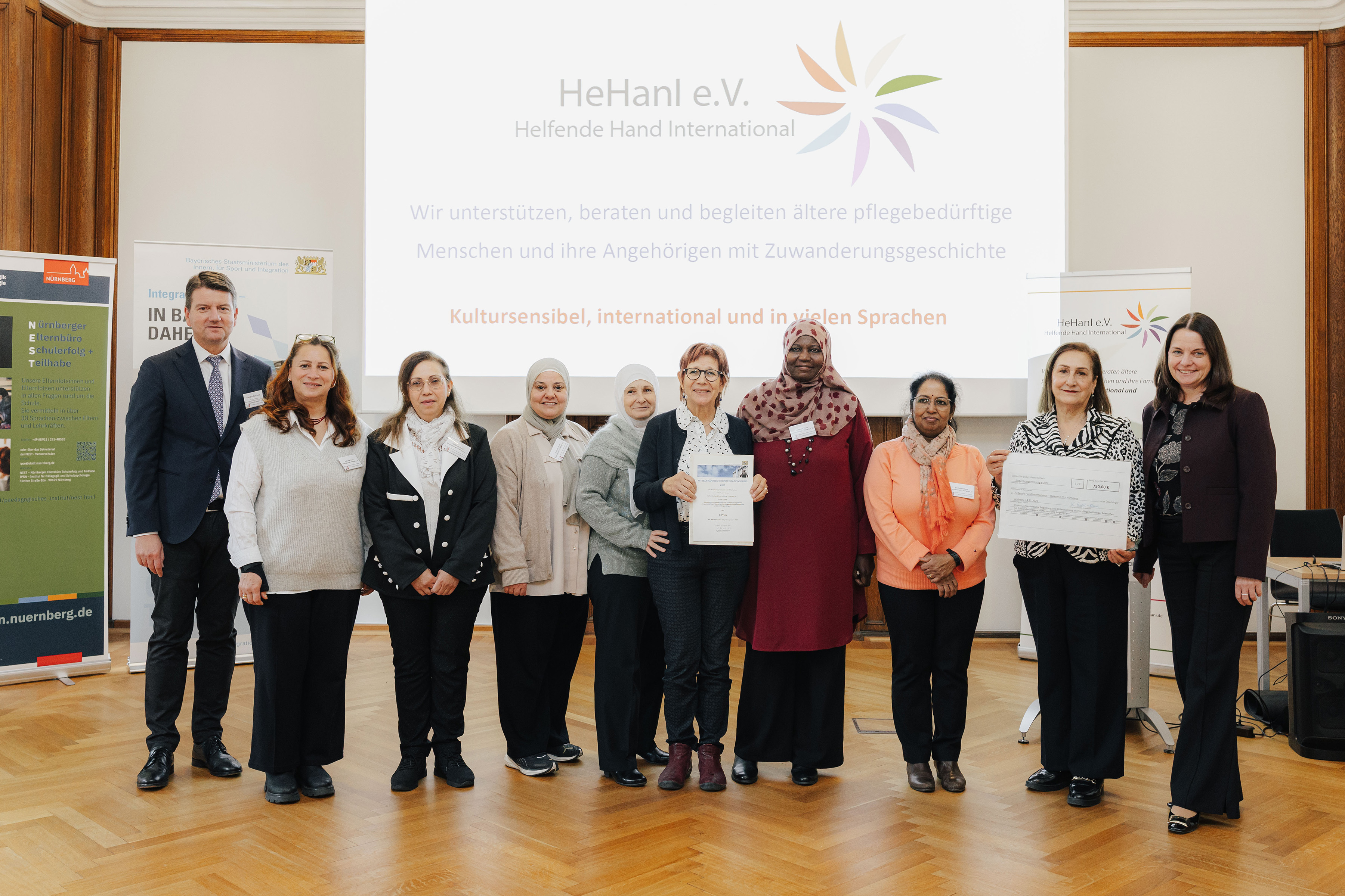 Das Projekt des Vereins Helfende Hand International – HeHanI e. V. setzt sich für ältere und pflegebedürftige Menschen mit Zuwanderungsgeschichte sowie ihre Angehörigen ein. Ziel ist es, diese Menschen im Alltag zu entlasten, ihnen Orientierung im komplexen Pflege- und Hilfesystem zu geben und gleichzeitig Integration, Teilhabe und gegenseitiges Verständnis zu fördern. Das Projekt besteht aus zwei miteinander verknüpften Angeboten, dem „Helferkreis“ und den „Internationalen Angehörigentutoren“. Im Helferkreis engagieren sich ehrenamtliche Helferinnen aus verschiedenen Herkunftsländern, die ältere und pflegebedürftige Menschen regelmäßig besuchen und unterstützen. Sie schenken Zeit, Gesellschaft und praktische Hilfe – sei es beim Einkaufen, bei Arztbesuchen, bei Gesprächen oder bei alltäglichen Anliegen. Durch ihre Sprachkenntnisse und kulturelle Nähe schaffen sie Vertrauen und helfen, sprachliche und kulturelle Barrieren im Kontakt mit Pflegediensten, Behörden oder Ärzten zu überwinden. Die Internationalen Angehörigentutoren richten sich an Menschen, die in ihren Familien ältere Angehörige pflegen oder unterstützen. Diese Tutoren werden geschult, um Pflegewissen, rechtliche Informationen und Unterstützungsmöglichkeiten in ihrer jeweiligen Muttersprache weiterzugeben. Alle ehrenamtlich Engagierten erhalten bei HeHanI e. V. eine fundierte Schulung mit 30 Unterrichtseinheiten sowie regelmäßige Fortbildungen. Darüber hinaus werden die Ehrenamtlichen durch das Team von HeHanI e. V. begleitet, beraten und fachlich unterstützt. Das Projekt fördert die soziale Teilhabe älterer Menschen mit Zuwanderungsgeschichte, und entlastet pflegende Angehörige. Durch den Austausch zwischen Menschen unterschiedlicher Kulturen und Generationen entsteht gegenseitiges Verständnis, Solidarität und interkulturelle Verbundenheit. Mit dem Projekt schafft HeHanI e. V. ein Netzwerk der Hilfe und Menschlichkeit, das auf Empathie, Freiwilligkeit und kultureller Vielfalt basiert.
