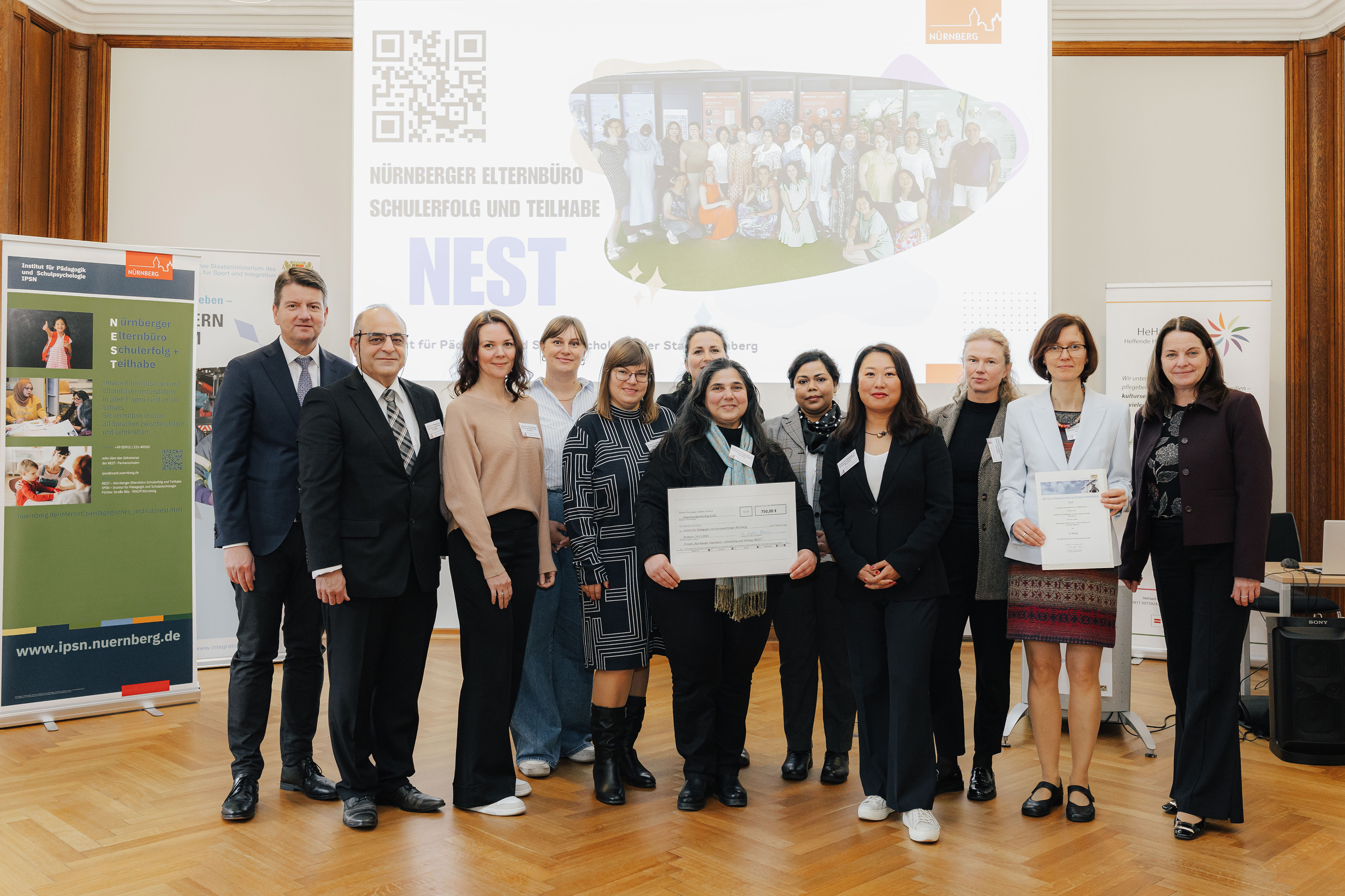 Das Nürnberger Elternbüro NEST ist ein Programm der Stadt Nürnberg, das insbesondere Familien mit Zuwanderungsgeschichte bei allen Fragen rund um Schule, Bildung und Erziehung unterstützt. Das Schulsystem ist komplex, schulische Abläufe und Erwartungen sind oft schwer zu verstehen, und Sprachbarrieren können die Kommunikation mit Lehrkräften erschweren. NEST verfolgt das Ziel, Eltern dabei zu unterstützen, ihre Kinder bestmöglich in der Schullaufbahn zu begleiten. Das Programm folgt einem Peer-to-Peer-Ansatz: Eltern unterstützen Eltern. Menschen, die selbst Erfahrung mit Migration und dem bayerischen Schulsystem gemacht haben, geben ihr Wissen weiter und schaffen damit Verständigung auf Augenhöhe. Im Mittelpunkt des Programms stehen die ehrenamtlichen Elternlotsinnen und Elternlotsen. Sie kennen die Herausforderungen der Bildungsintegration und sprechen häufig mehrere Sprachen. Nach einer qualifizierten Schulung übernehmen sie die Rolle von Vermittlern und Brückenbauern zwischen Eltern, Schulen und städtischen Einrichtungen. Sie begleiten Familien bei Elterngesprächen, informieren über Bildungswege, helfen bei Formularen oder erklären schulische Abläufe. Aktuell engagieren sich rund 50 Elternlotsinnen und Elternlotsen. Zwei pädagogische Mitarbeiterinnen des Instituts für Pädagogik und Schulpsychologie (IPSN) koordinieren das Programm. Durch regelmäßige Treffen, Supervisionen und Fortbildungen werden die Ehrenamtlichen kontinuierlich unterstützt und gestärkt. Ein zentrales Anliegen ist die persönliche und gesellschaftliche Selbstwirksamkeit der Elternlotsen zu fördern. NEST trägt wesentlich zum interkulturellen Zusammenleben und zur Bildungsintegration in Nürnberg bei. Es schafft Begegnungen, baut Vorurteile ab und ermöglicht Teilhabe unabhängig von Herkunft oder Sprache. Das Projekt steht beispielhaft für ein modernes, inklusives Verständnis von Bildung: Eltern als Partner, Vielfalt als Stärke und Bildung als gemeinschaftliche Aufgabe.